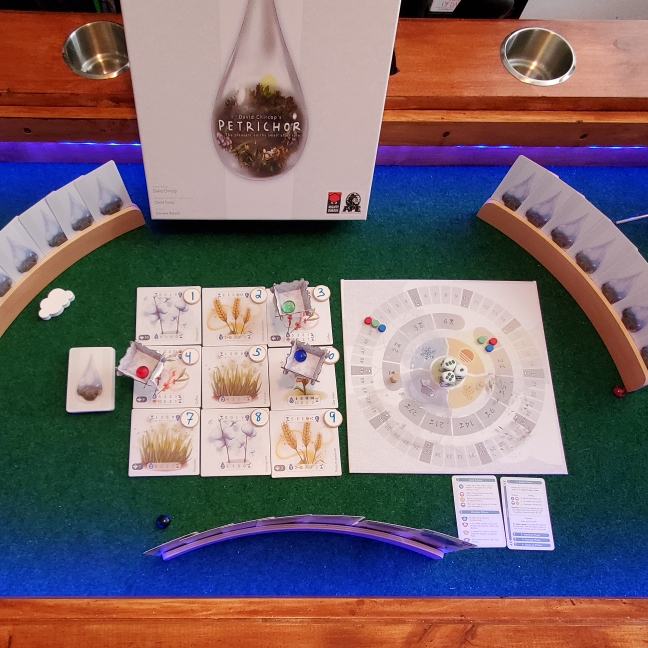 Petrichor is a stunningly beautiful game with simple-to-learn rules, while still providing rich and thoughtful decisions during gameplay. It is designed in a way that remote gaming is a breeze, even if only one side has a copy! (Although the side that has it gets to brag about how pretty it is in person!)