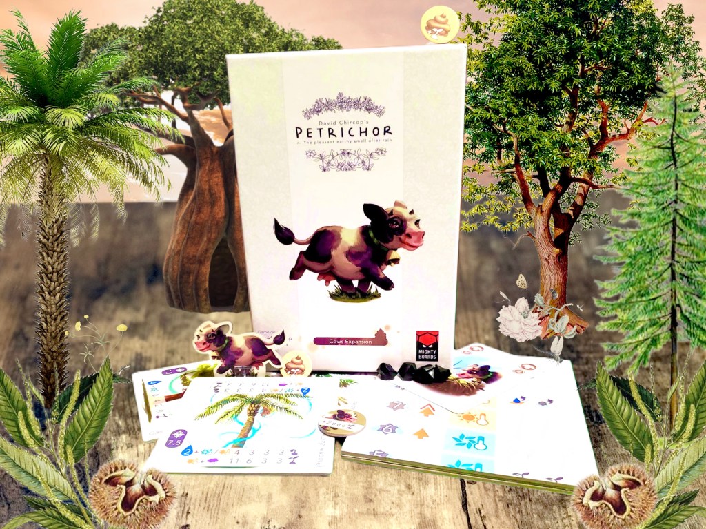 This is not a paid endorsement, nor does it need to be for us to gush over Petrichor! For a game we absolutely love, comes an expansion we absolutely needed! Mighty Boards is at it again with Cows, a cheeky expansion about fertilization and it’s environmental impact. Who knew greenhouse gasses could be so much fun? Strap in and heed these words of wisdom, just like a certain literary masterpiece once said: Everyone Poops!