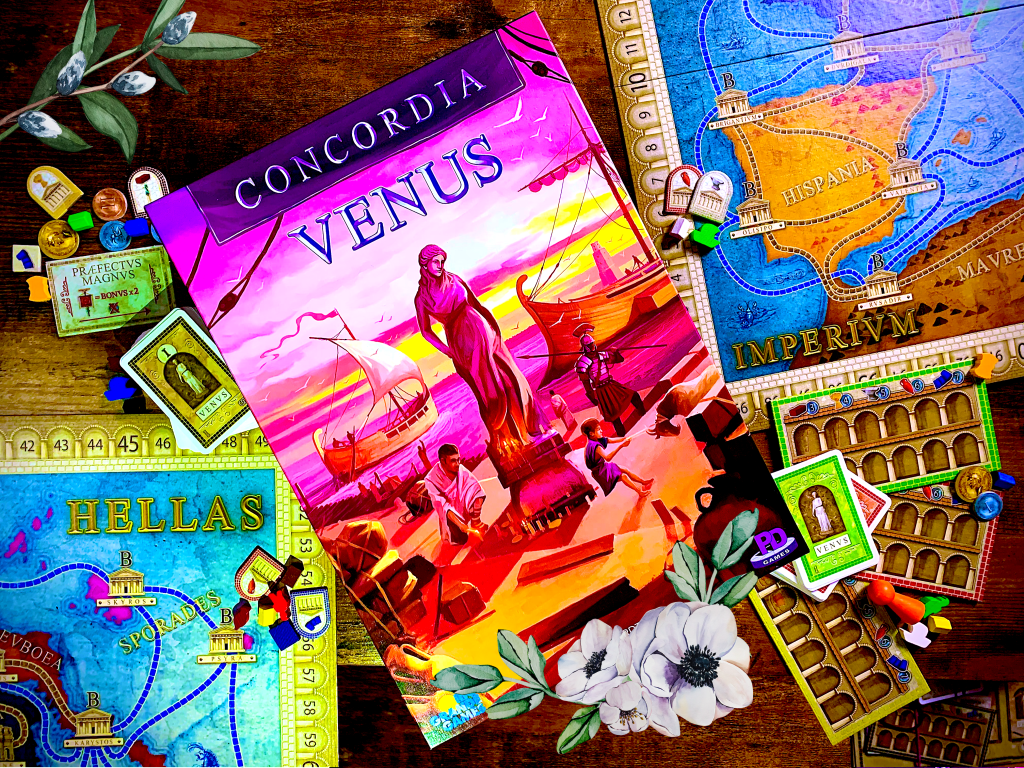 Concordia Venus is, dare I say it, a masterpiece. With a litany of expansions and alternate versions, an abundance of maps and play variants are at your fingertips. Venus, specifically, is a work of art. It flawlessly combines area control, resource management, and set collection into a wonderfully seamless experience. We’re taking you back to ancient Rome! You’ll soon see that you won’t even need assistance from Venus to fall in love with Concordia!